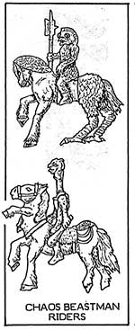 Beastmen were first released in July 1984 as C38, but changed to C27 when they converted to slotta-bases in September 1985. The C34 Beastmen Raiders first appear on the December 1984 Flyer.