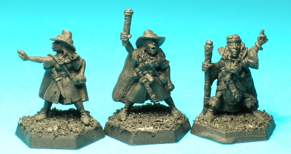 This set of 3 figures was designed to represent a human female Magic-User, at three different stages of career progression, from lowly apprentice mage to powerful spellcaster.