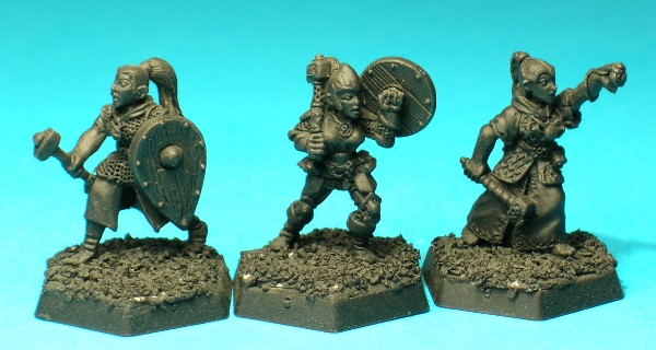 This trio of figures consists of 3 female human Cleric player characters, a low-level adventuring acolyte, and mid-level priestess, and a powerful high-level cleric, heavily armed and armoured.