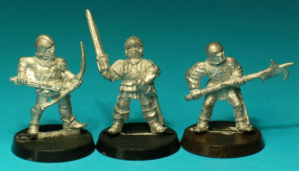 The pack of 3 Men-at-Arms featured a trio of typical mercenary hirelings or henchmen, often used to boost the fighting strength of an adventuring party. No variants were produced in this code.