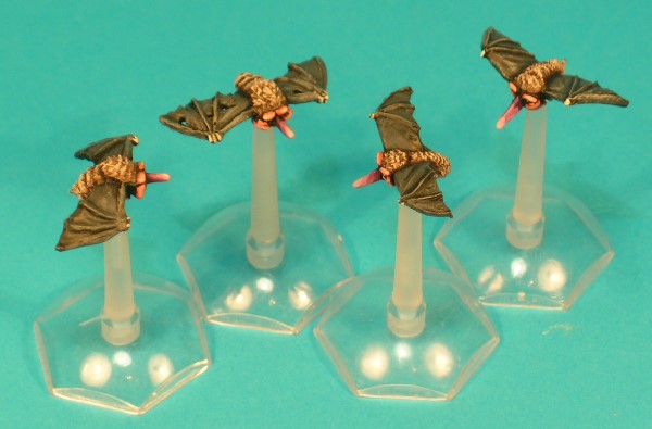This set of four figures represent Stirges, pesky blood-sucking vermin somewhere between a bat and a mosquito. They were sold in packs of 4 different models, but this code did not feature any further variants. The figures were supplied with clear plastic 'flying bases' as shown in the photo above.